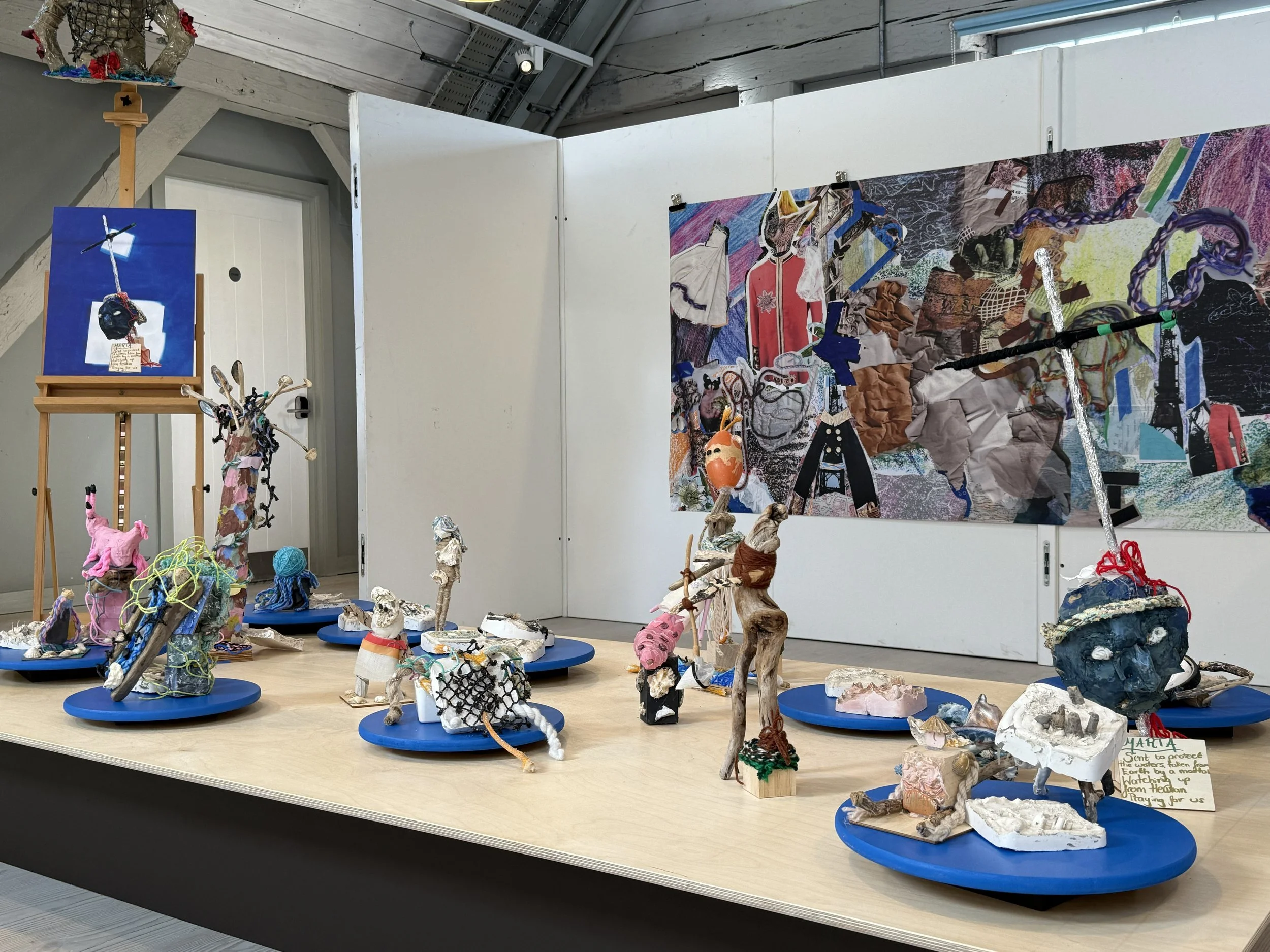 Waste River Guardian sculptures made in collaboration with primary and secondary schools in North Kent.